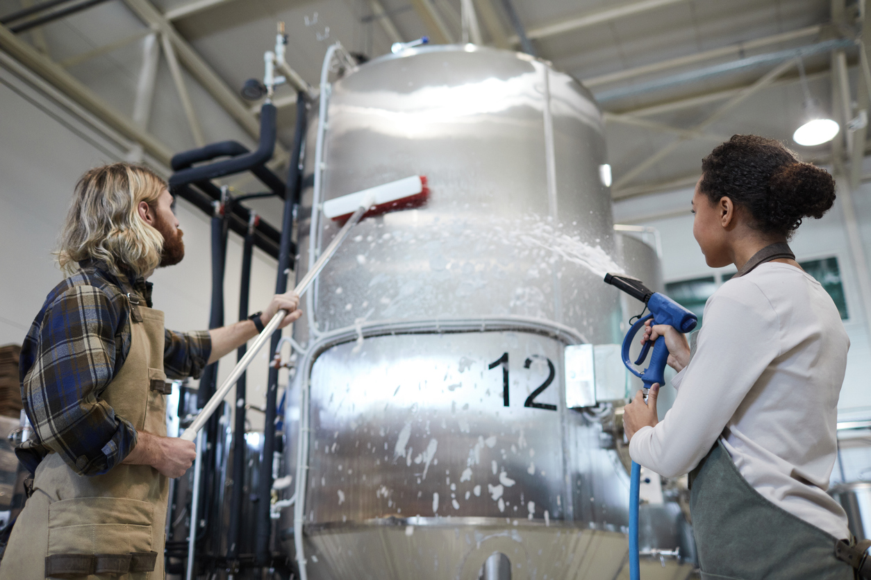 - Rinçage immédiat : rincez les cuves d'empâtage, les cuiseurs et les tuyaux avec de l'eau chaude après chaque lot. Cette opération permet d'éliminer les sucres solubles et les solides du grain avant qu'ils ne sèchent.